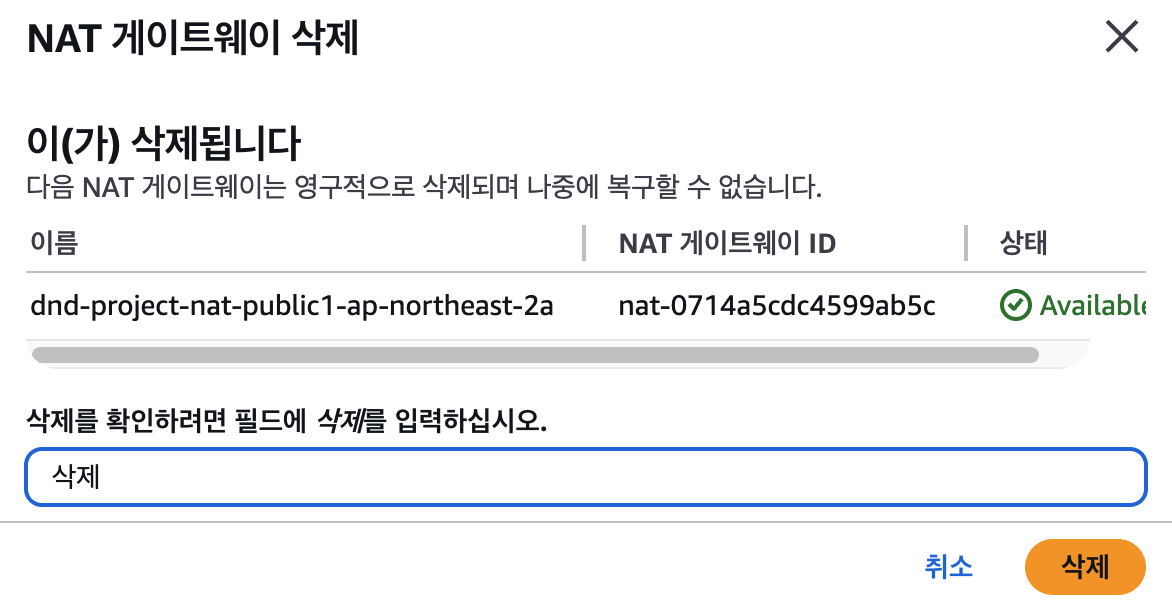 네트워크 구성 변경 및 비용 절감: EC2가 Public Subnet으로 이동하면서 더 이상 NAT 게이트웨이가 필요 없어졌다. 시간당 비용이 부과되는 NAT 게이트웨이를 즉시 삭제하여 비용을 절감했다.