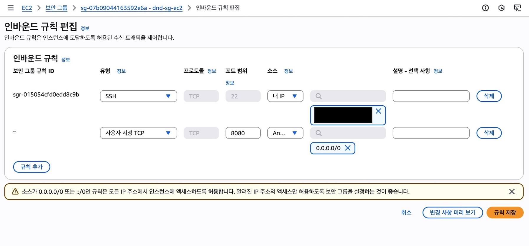 로 지정하여 허가된 장소에서만 인스턴스에 접속할 수 있도록 제한했다.
