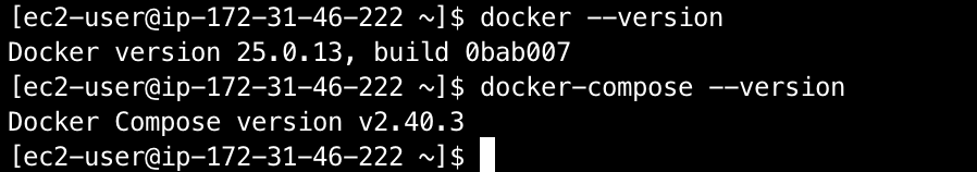서버 생성이 완료된 후, SSH로 접속하여 Docker와 Docker Compose를 설치했다.