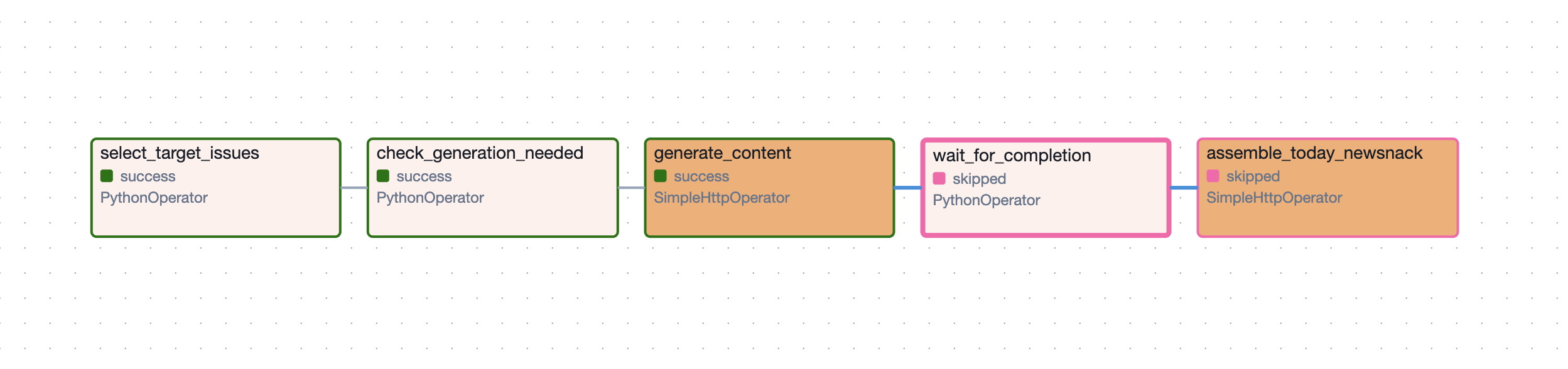 A["select_target_issues<br>(PythonOperator)"] --> B["check_generation_needed<br>(PythonOperator)"]